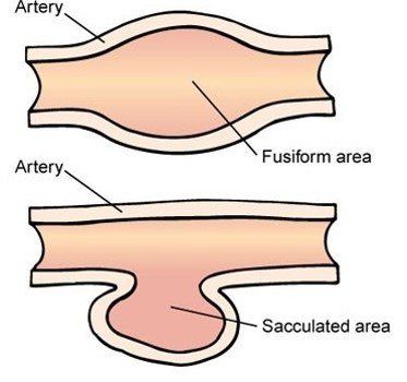 The artery dilates to form a swelling with all 3 layers intact. However where the artery wall has ballooned out to form the aneurysm, there is chance that the artery wall may rupture.