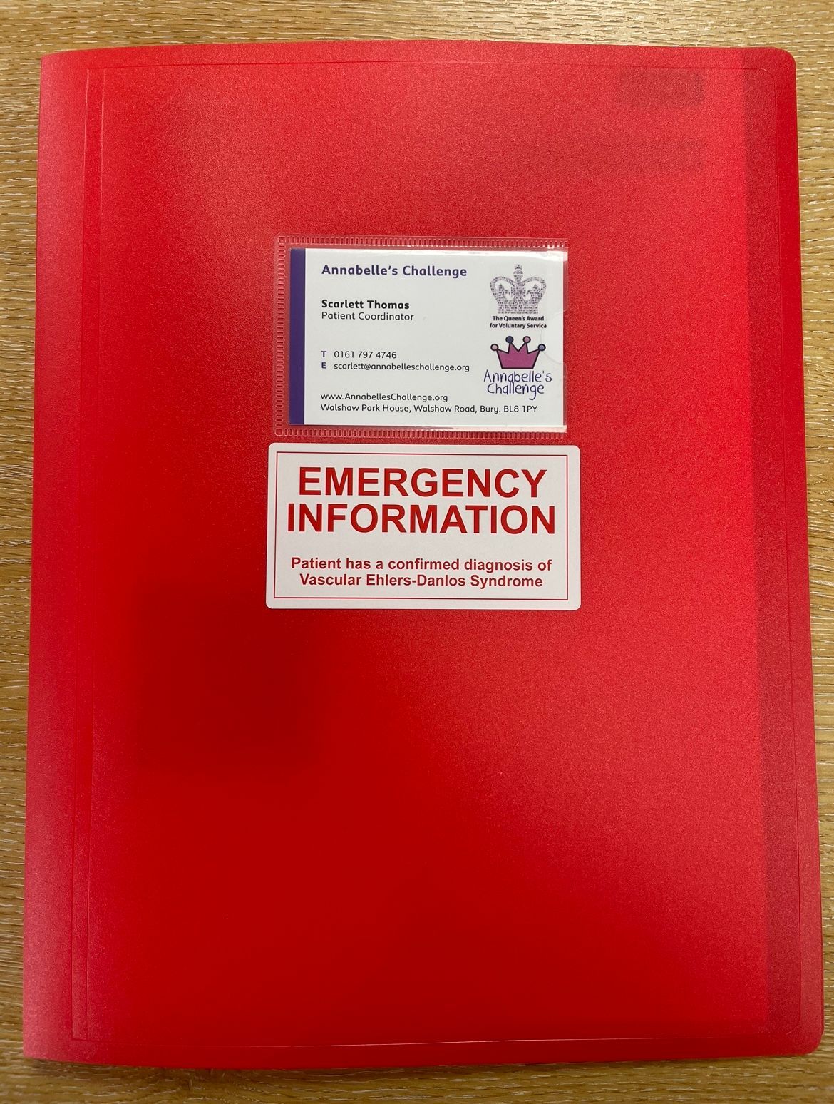 The contents of this pack have been developed from the lived experience of people who have vascular EDS when accessing emergency care, it is available free to patients of Annabelle's Challenge / EDS Service and includes: